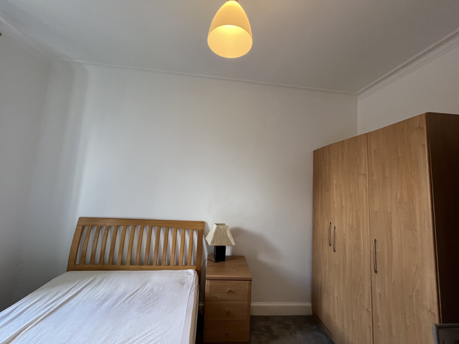This one-bedroom flat on Dalgety Street is designed for comfort and convenience, featuring a spacious double bedroom complete with a double bed and wardrobe. The living area is well-lit and includes a functional kitchen equipped with essential appliances such as a washing machine, making it ideal for both relaxation and daily living.