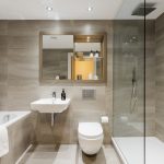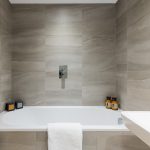 Contemporary with porcelain tiling throughout. En-suite with deluxe sized rainfall shower and separate handheld shower, plus house bathroom with both shower and separate full-sized, deluxe bath. Both with WC and heated towel rail, plus bespoke vanity cabinet with LED lighting.