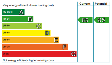 En-suite bathroom with contemporary porcelain tiling throughout. Deluxe sized rainfall shower with separate handheld shower, WC and heated towel rail, plus bespoke vanity cabinet with LED lighting.
