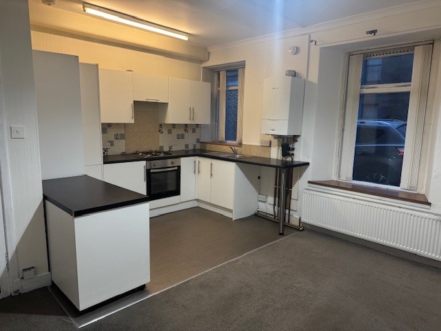 Unfurnished Accommodation:- Ground floor flat close to town centre and all amenities. This one bedroom property consists of an open plan Lounge with a recently fitted Kitchen with hob and oven, Bathroom with shower and a paved garden to rear. The property also benefits from double glazing and gas central heating.