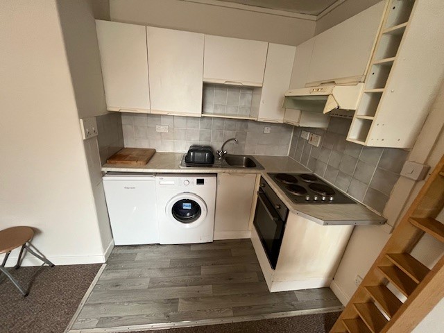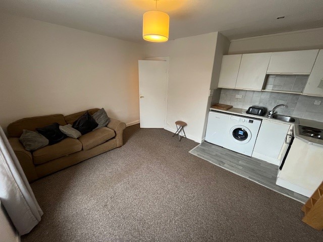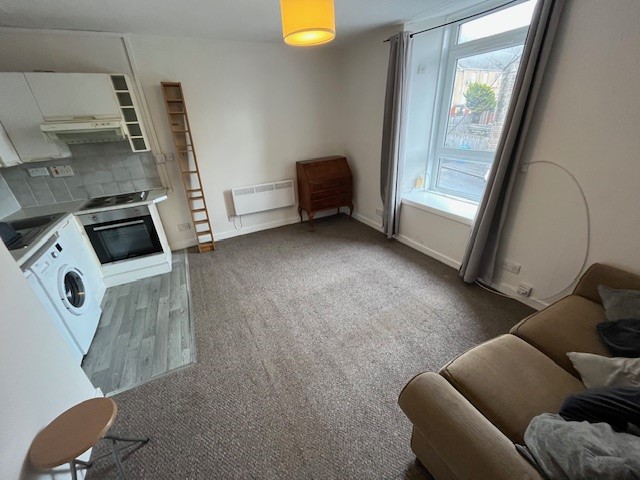 UnFurnished Accommodation with white goods:- First Floor one bedroom property on the very popular City Road area of Dundee. Property consists of Lounge/Kitchen, bedroom and bathroom with shower over bath. . Kitchen consistes of fridge, hob, oven and washing machine. Short distance from Balgay Park & amenities. Benefits from new secure door entry, on street parking and electric heating.