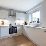 Open plan, sleek and modern quality worktops with integrated Samsung appliances including touch control, ceramic, 4-ring electric hob, combi oven, stacked fridge/freezer and dishwasher. Additional washer/dryer is available.