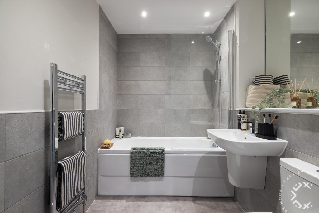 Family bathrooms have contemporary tiling throughout and provide quality chrome bathroom fittings, including a heated towel radiator. The main bathroom provides a bath with shower. A WC is available on the ground floor as standard.